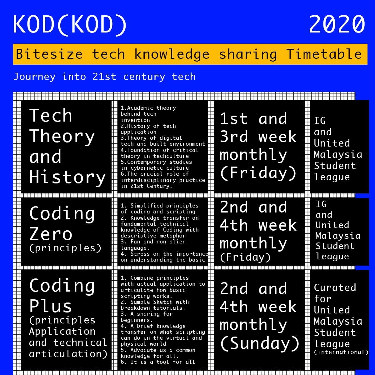 This is an initiative to exchange knowledge and to introduce bitesize knowledge about Coding + Programming by Kod(Kod) Collective on United Malaysia Architecture student league (UMA) online platform.